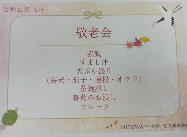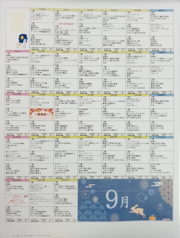 9月のメニュー表