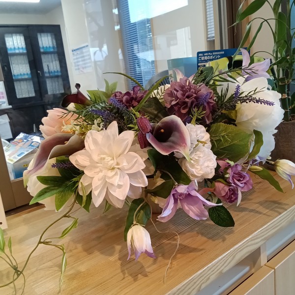 今回はあじさいの時期が終わったので 利用者M様がフラワーを新しくしてくれました。