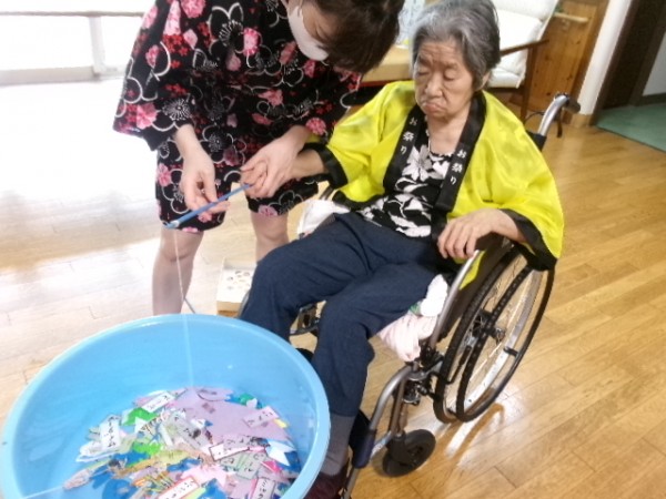 魚つり(ジュースつり)ゲーム、ないすいん、玉入れなどのゲームを楽しまれました。