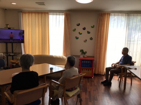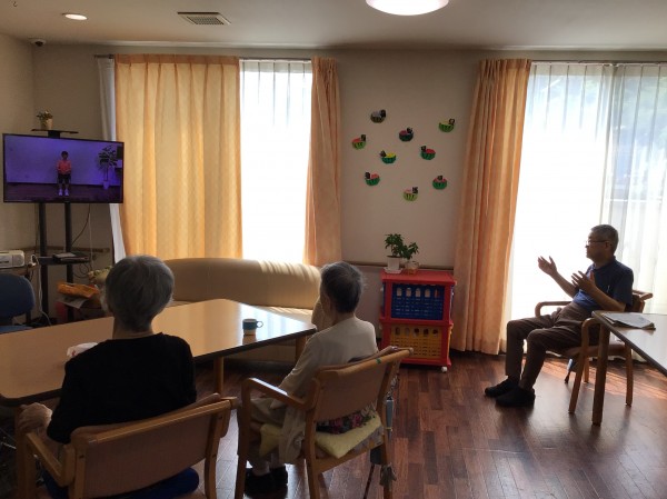 体操は毎朝10時に行っており、テレビに映る先生の動きに合わせ