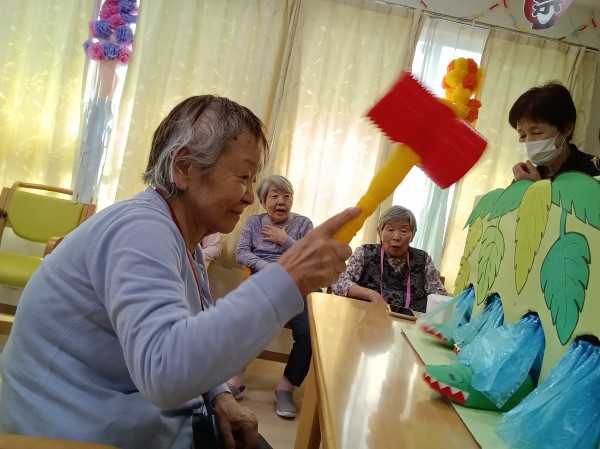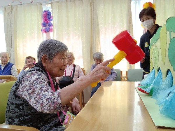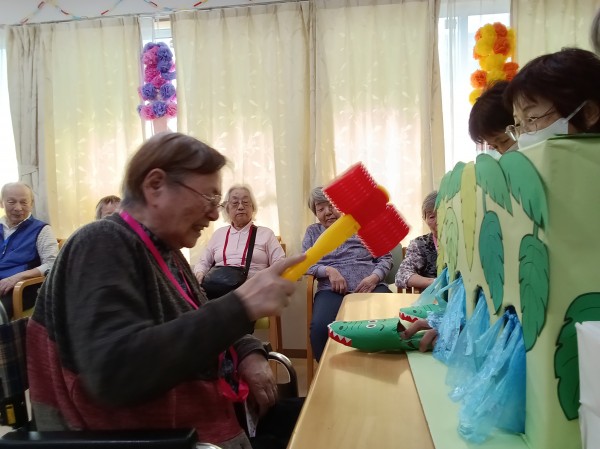 穴から出てくるワニを皆さん必死に叩いておりました。