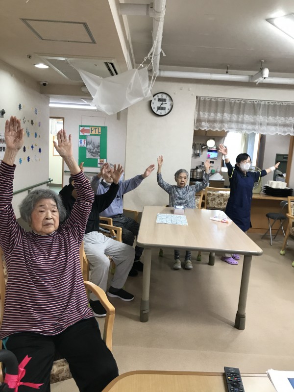 ALSOK介護ではリモートによる様々な体操コンテンツが存在しており、今回は腸活プログラムを行いました。
