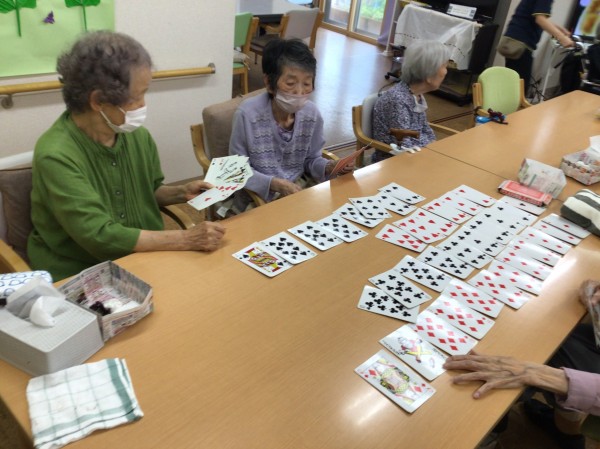 皆さんで七並べを楽しんだり、ババ抜き・ジジ抜きをしたりと…、食休みの時間を使って