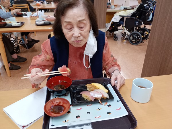 『お寿司久しぶりに食べる!』と入居者様、召し上がる前から楽しみにされていました!!