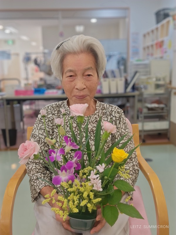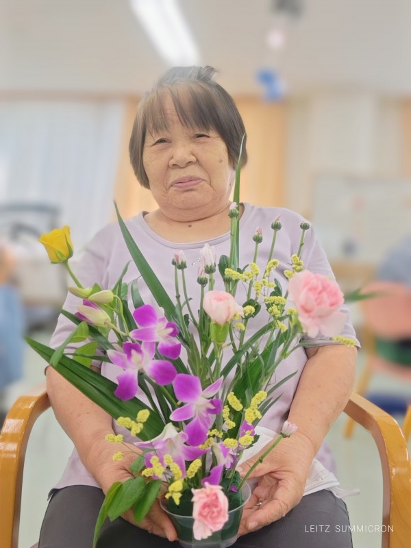 どんどん手を動かされすべての花と葉っぱを挿し活け