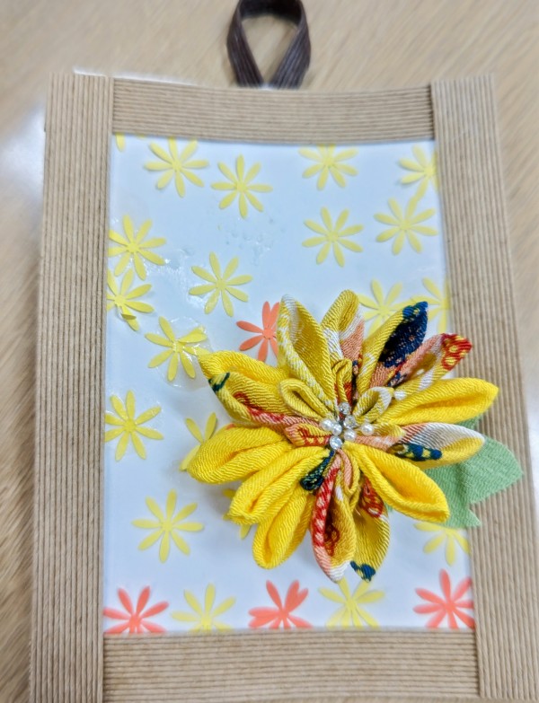 切り抜いた黄色と橙色2色の花をお好みのバランスでふんだんに貼り付けていただきました。