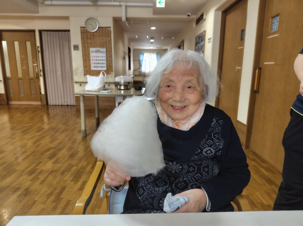 職員が“綿菓子”と作り皆様へお渡しすると「大きくて凄い!!」と驚かれておられました。