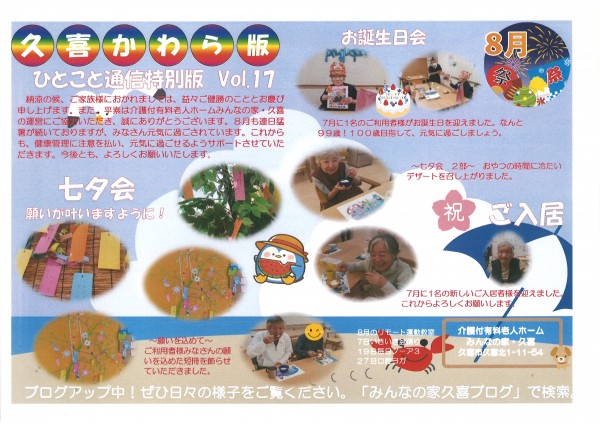 先月の様子をかわら版にまとめましたので、ぜひご覧ください。