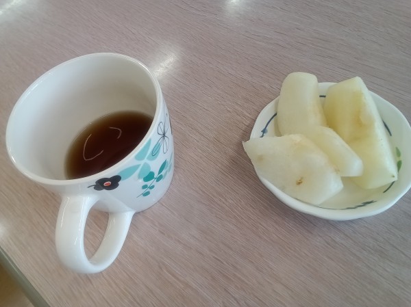 今日は秋の代表の一つの「梨」を頂きましたので早速おやつの時間に食べていただきました様子の報告です(^^♪❤