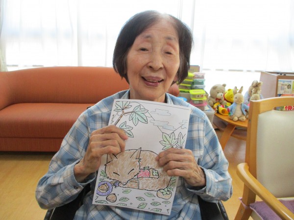 「絵がとっても可愛いわね~( *´艸`)」「上手く出来るかしら(;'∀')?」とお話されつつ塗っています(*^-^*)