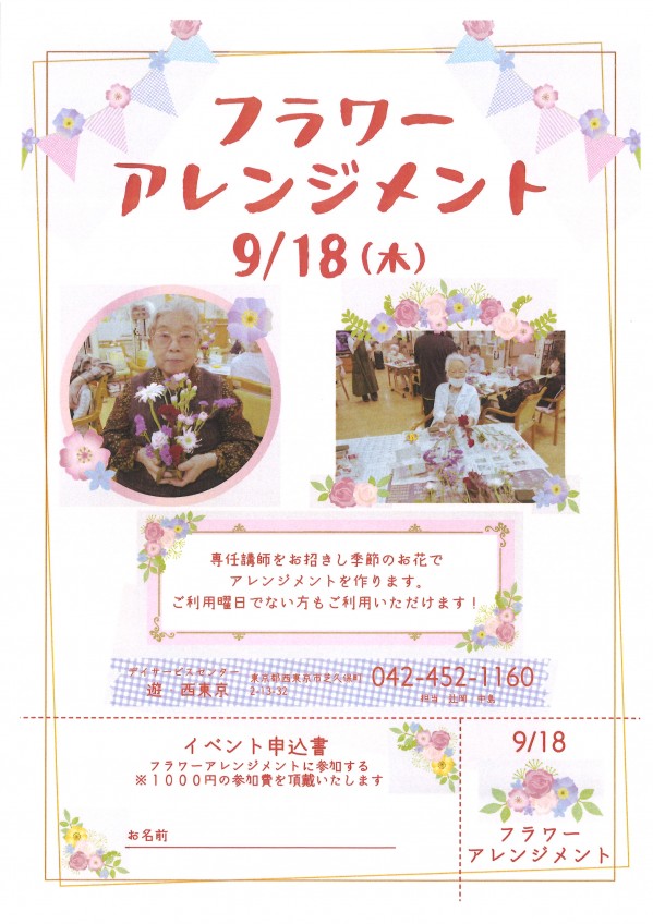 ・9月18日(木)開催!フラワーアレンジメント(※参加費1000円が掛かります)