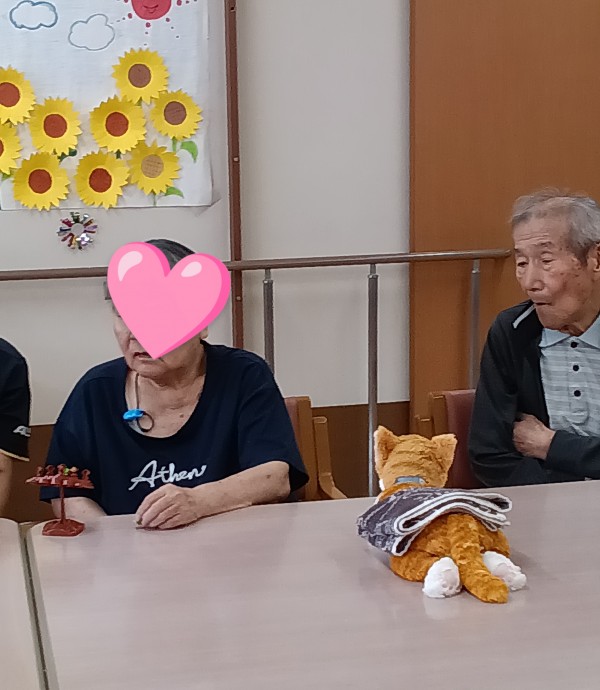 今回は日中の様子 バランスゲームを行っています、見ている方、御本人ともハラハラドキドキでした(^_-)-☆ゲームを行う事で視覚的な情報を脳ですぐに処理して指を動かす事が必要となる為、認知機能の維持、向上つながると考えられているそうです。皆さん興味津々です❣