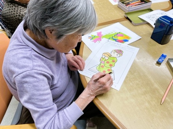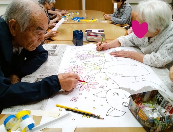 最近ご入居者様がはまっているもの、それは『塗り絵』と『ちぎり絵』です!!