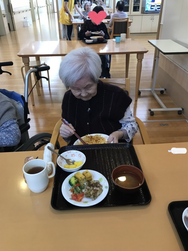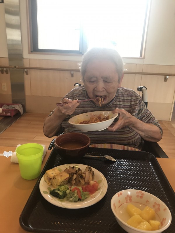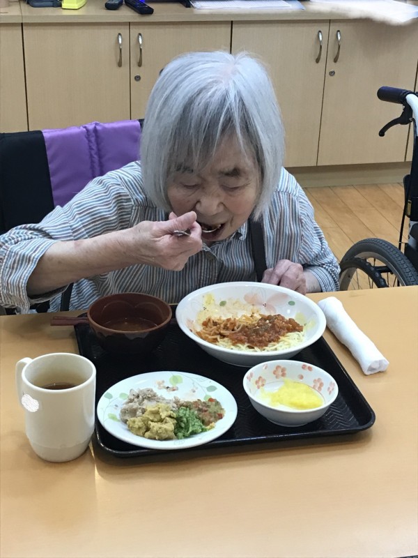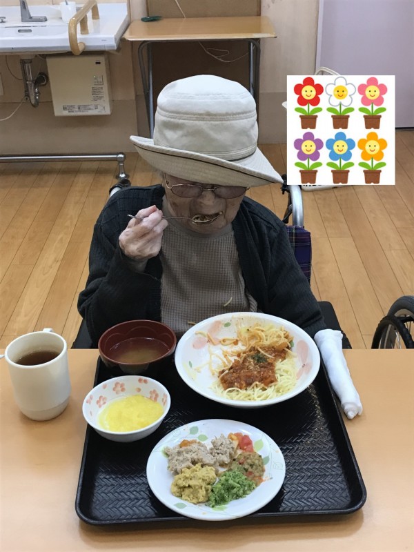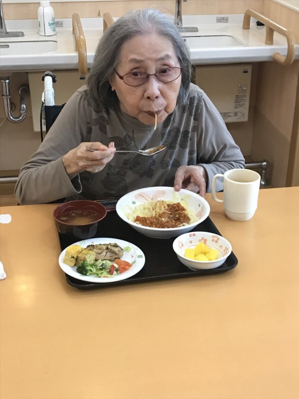 普段の献立にはないミートソーススパゲティを召し上がっていました(*^▽^*)