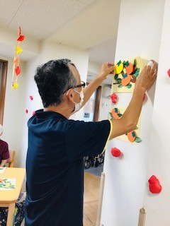 背の高いお兄さんに、貼ってもらいます!(^^)!