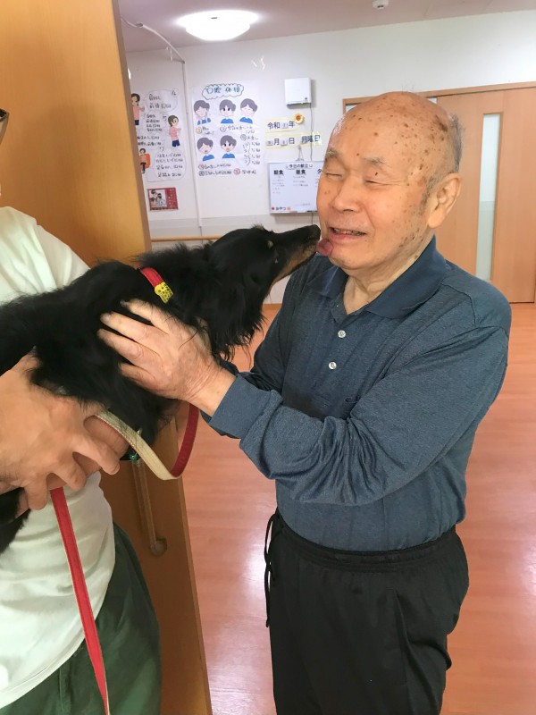 動物となかなか触れ合う事のない日常で、今日は可愛い来訪者が来られ皆さんとても喜んでおられました。