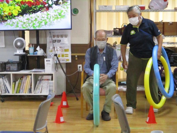「椅子と椅子の間を通すのが難しい!」と皆様真剣な表情。思ったより曲がったり、惜しくも外れてしまったりと、歓声と笑い声がたえませんでした。