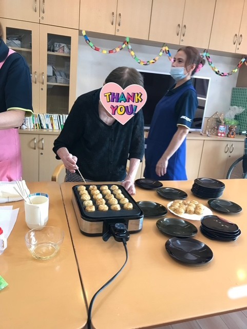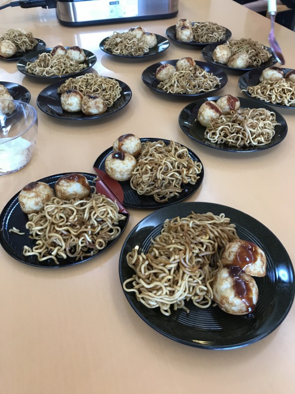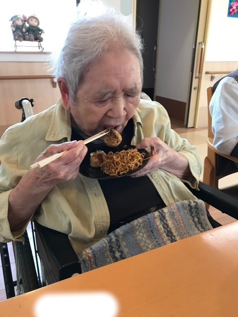そこで8月のおやつレクでは焼きそばとたこ焼きを作ってみました(^O^)/