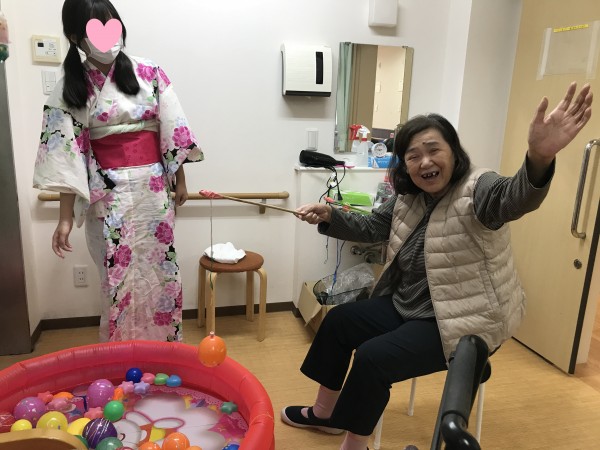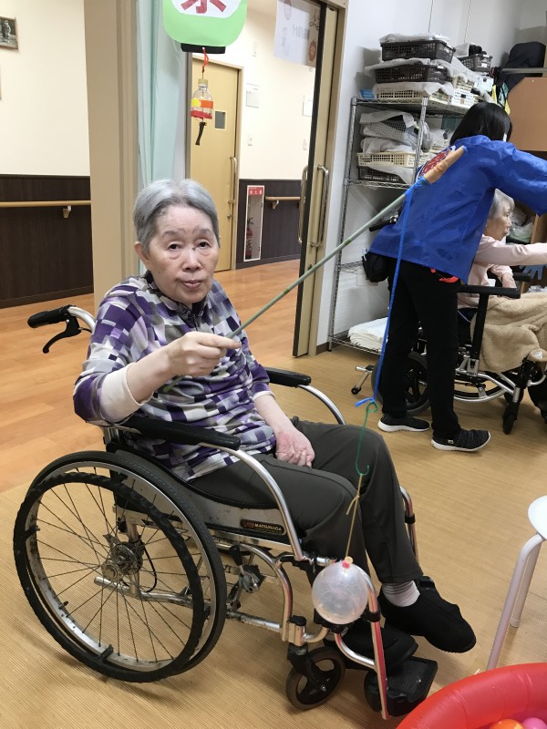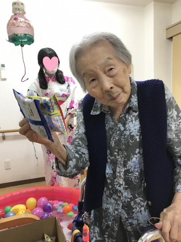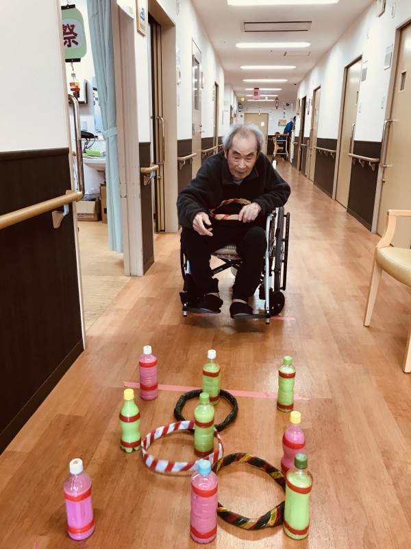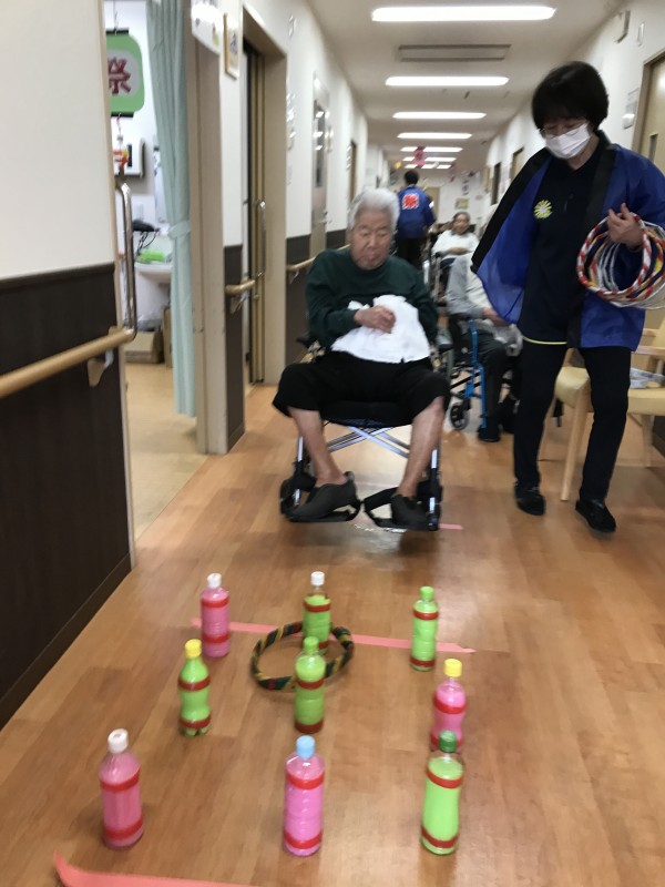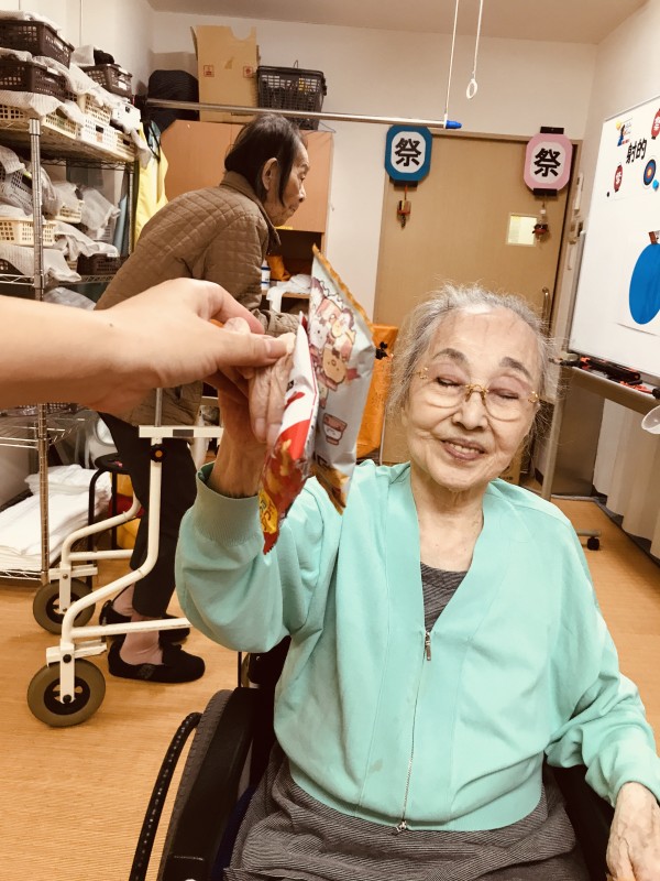 食事のあと は射的、ヨーヨー釣り、輪投げ会場を順番に回ってもらいお祭り気分を味わって