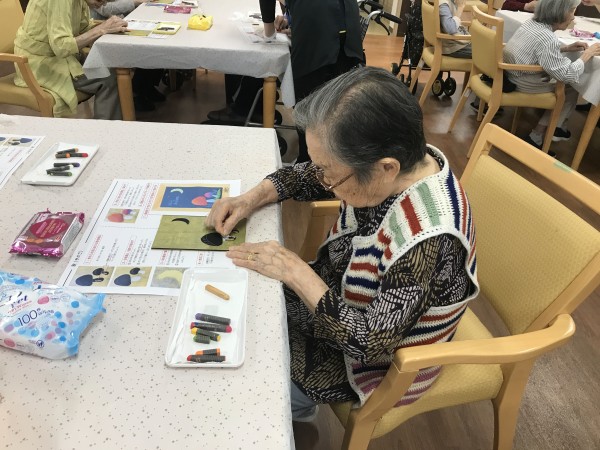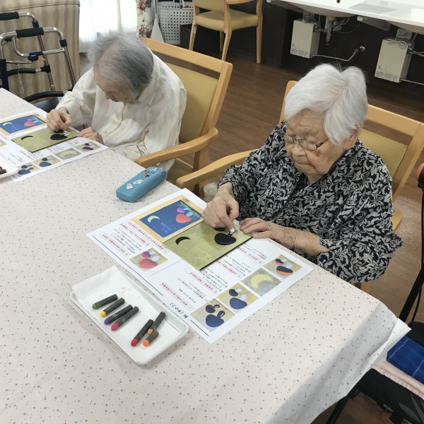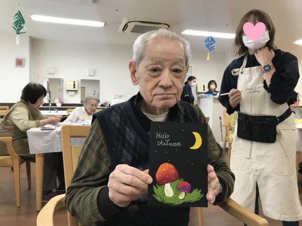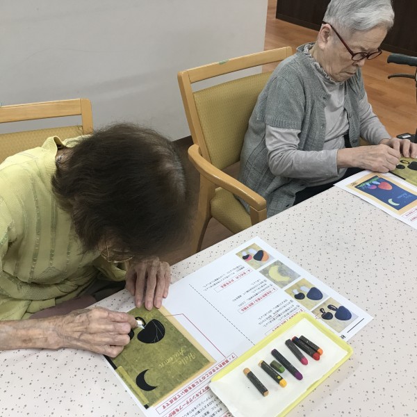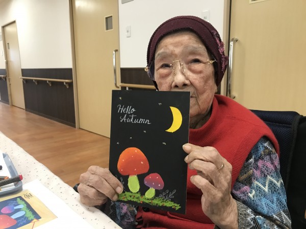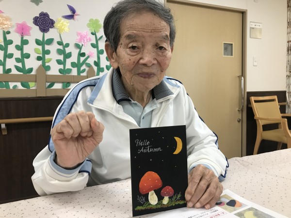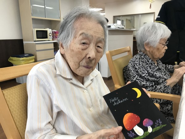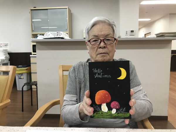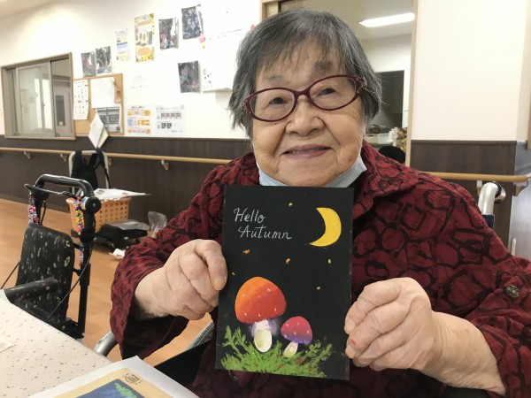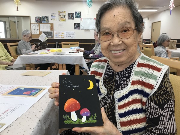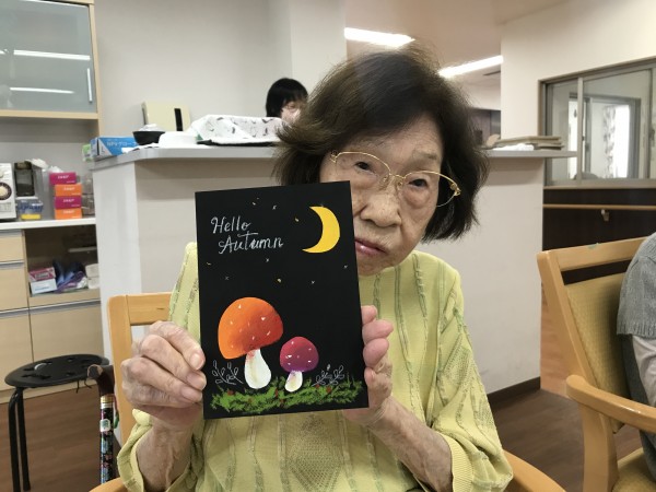 今回は秋らしく(まだ暑いですが...)きのこ、お月さまを描いてもらっています。