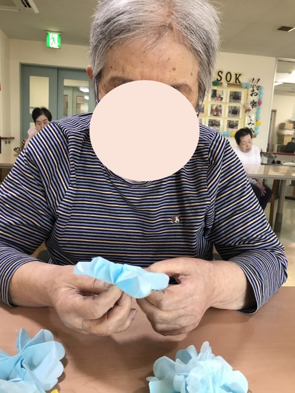 壁面飾り作りを手伝ってもらっています