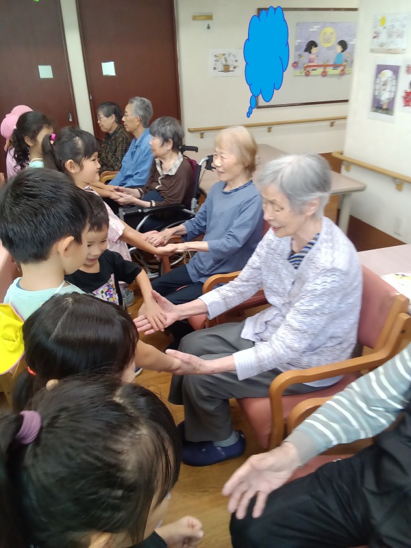 ご利用者様、園児たちと一緒に手遊び歌を楽しまれました♪