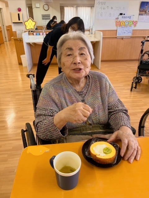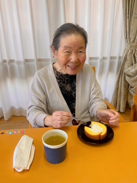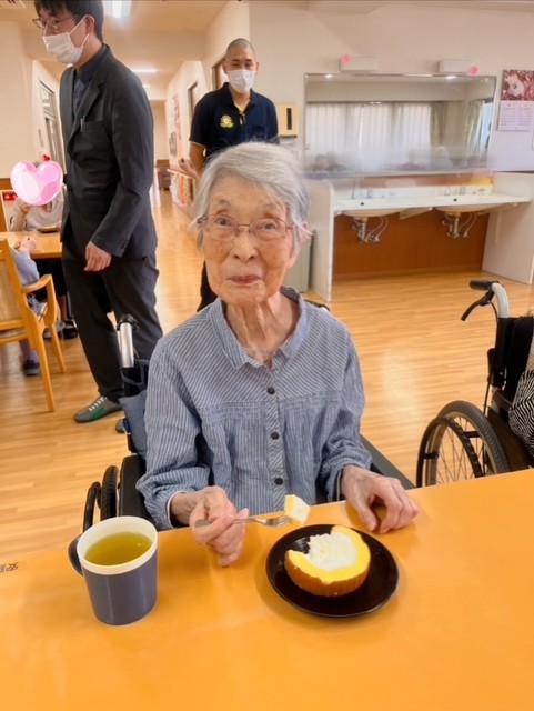 皆でケーキをいただきながらほのぼのとしたひと時を過ごします