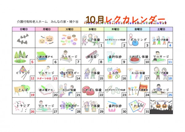 10月のレクカレンダー