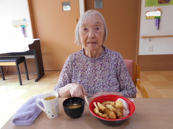 ホームでは少し前になりますが、昼食に天丼を召し上がりました!