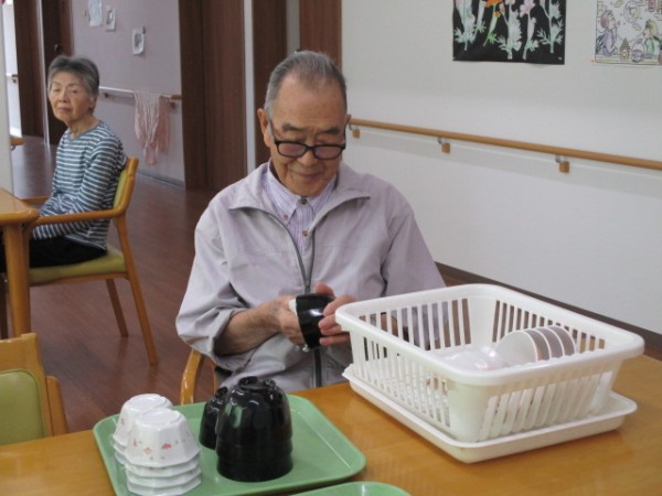 食器吹きを行っています( ^ω^)・・・ 丁寧に拭いて下さっています(*^_^*)