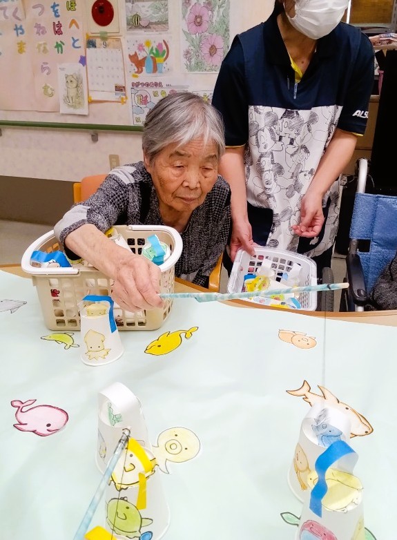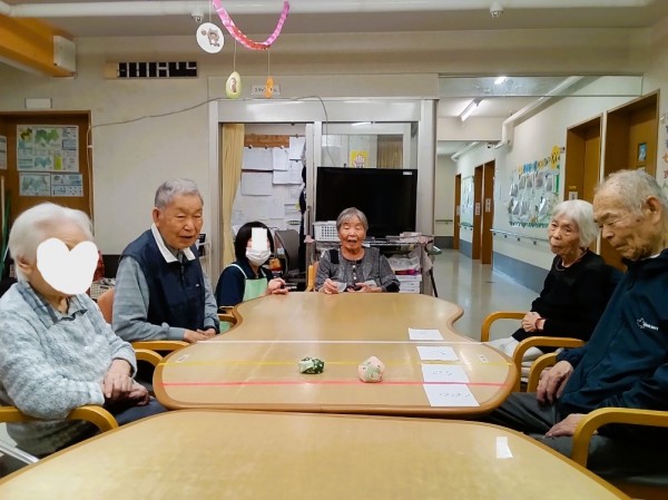 「100点!」「狙いは100点!」とスタッフに煽られながら投げるご入居者様、、、