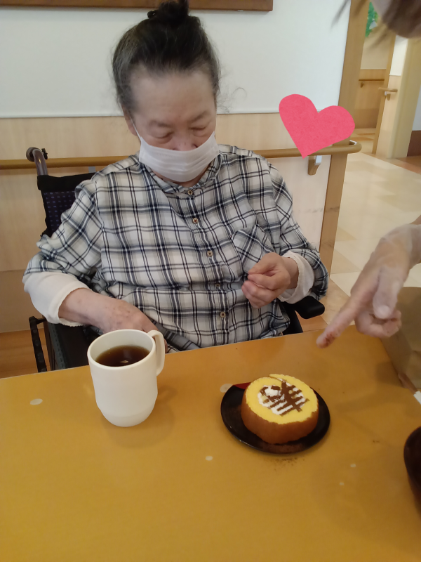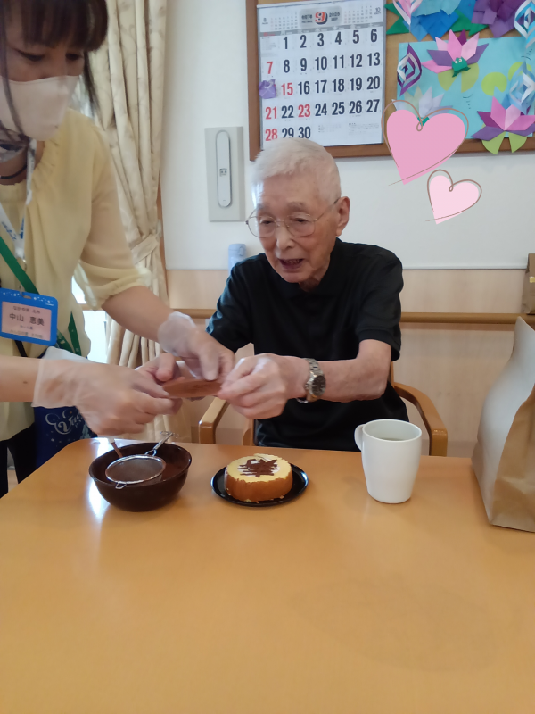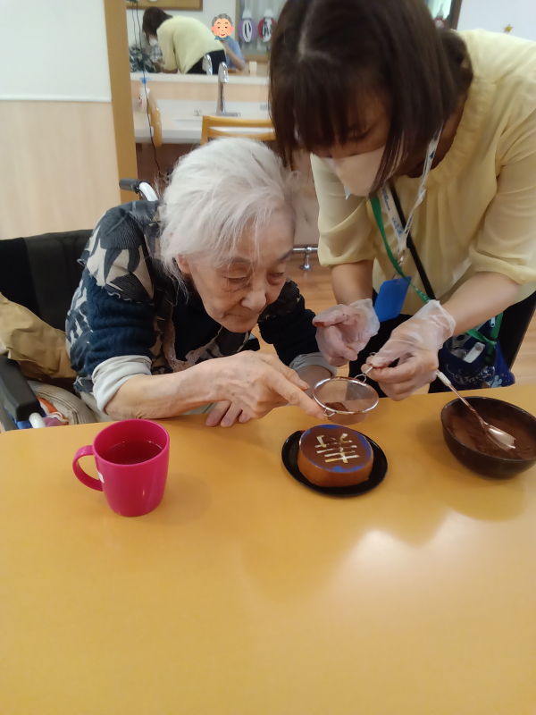3階の皆様も自分でココアを振り「寿」を完成させていて、綺麗な「寿」ができた時の満面の笑みが印象的でした!