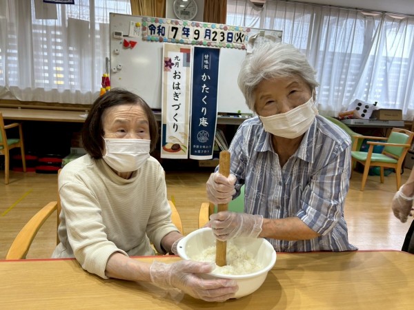 作るのは手慣れたもので、ご飯を潰すいわゆる”半殺し”の作業は「もういいんじゃない?」と声を掛け合っていました。