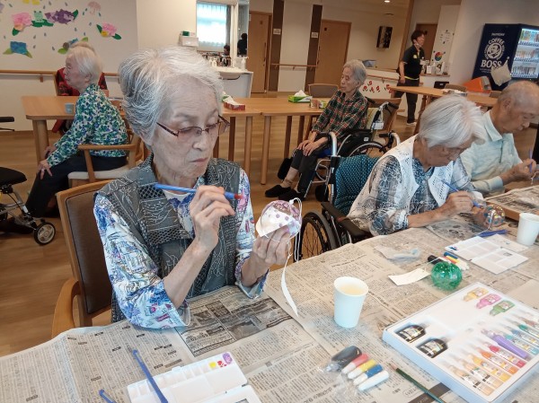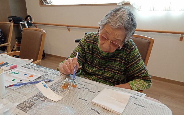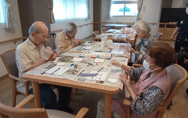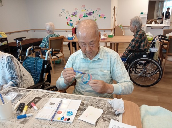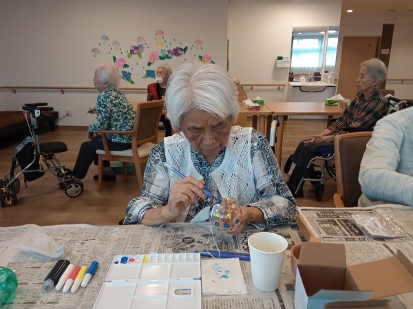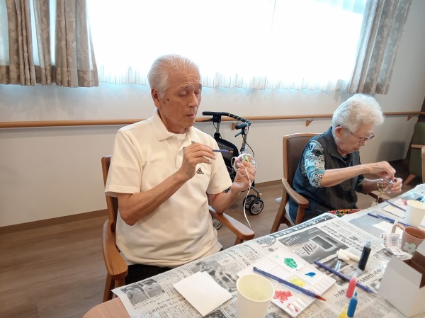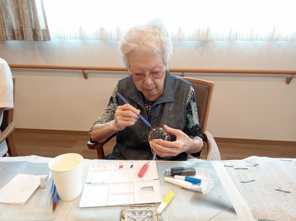 ご入居者様に、風鈴の絵付けを体験して頂きました。