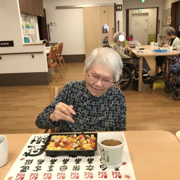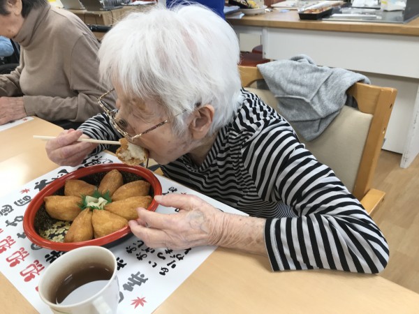 皆さんの食いっぷりの良さ! やっぱりお寿司は美味しいですもんね♪ 利用者様の食の好みなどによって、その方に合うメニューを提供しています!