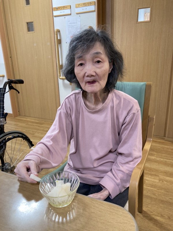 今日のおやつは秋の果物の梨を召し上がって頂きました。