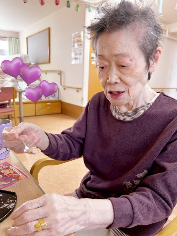 「美味しいですか?」とホーム長に声を掛けられ、ゆっくりと頷き握手を求めるT様。