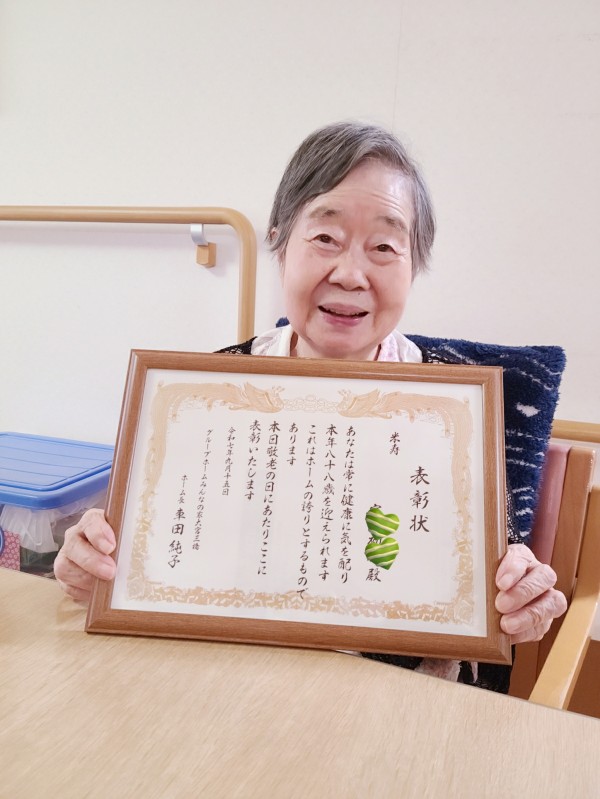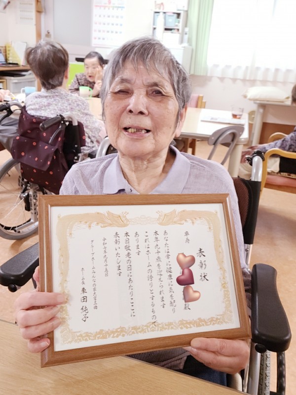 まずは、米寿のM様・卒寿のA様・白寿のB様に表彰状の贈呈です。
