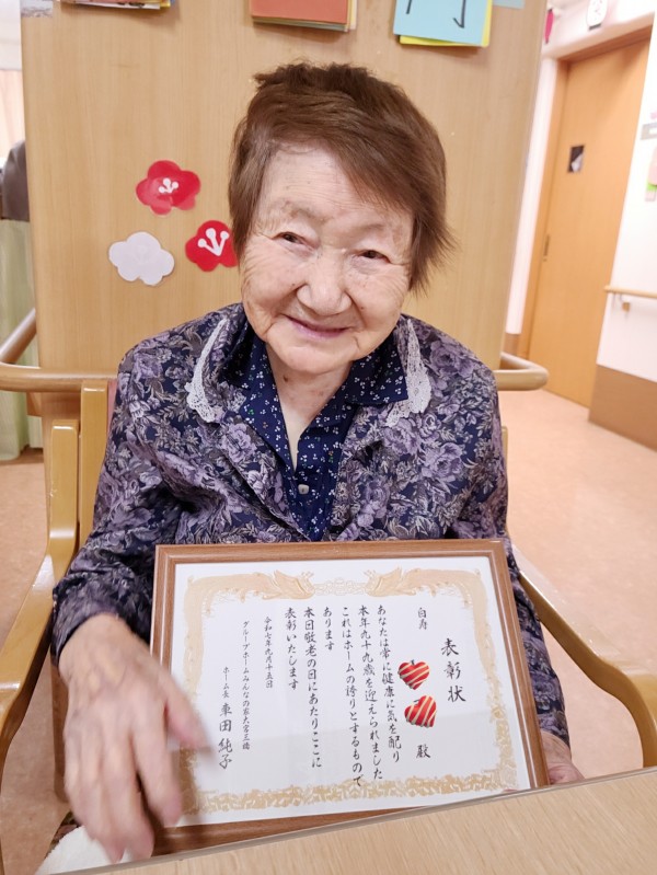 職員から「99歳でご自分で歩けて、お手伝いも率先してやって下さって、すごい事ですよ!」と言われると