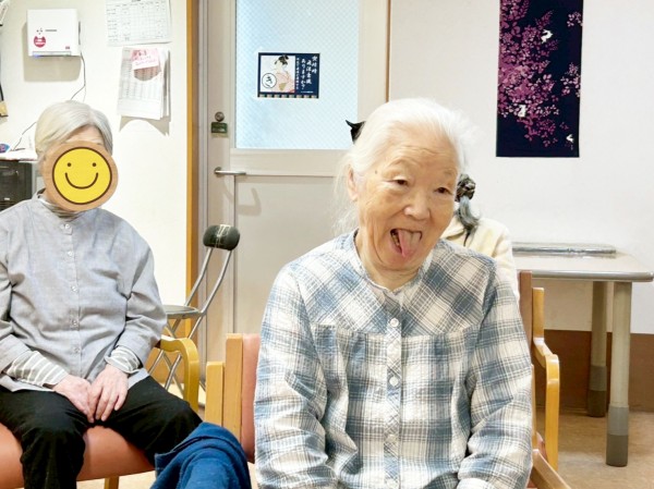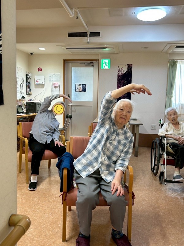 I様は職員の声掛けに合わせて参加。大きな声が響いていました。