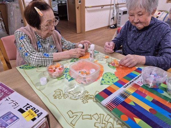 私たちの事業所では、定期的に季節のちぎり絵制作をしています。