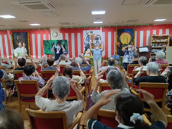 一歩会さんリーダーの横笛演奏に合わせて、和太鼓の小川さんが歌を歌いました♪