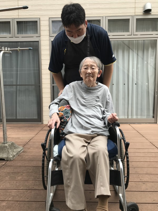 秋晴れの中、利用者様とスタッフ同行でホームの