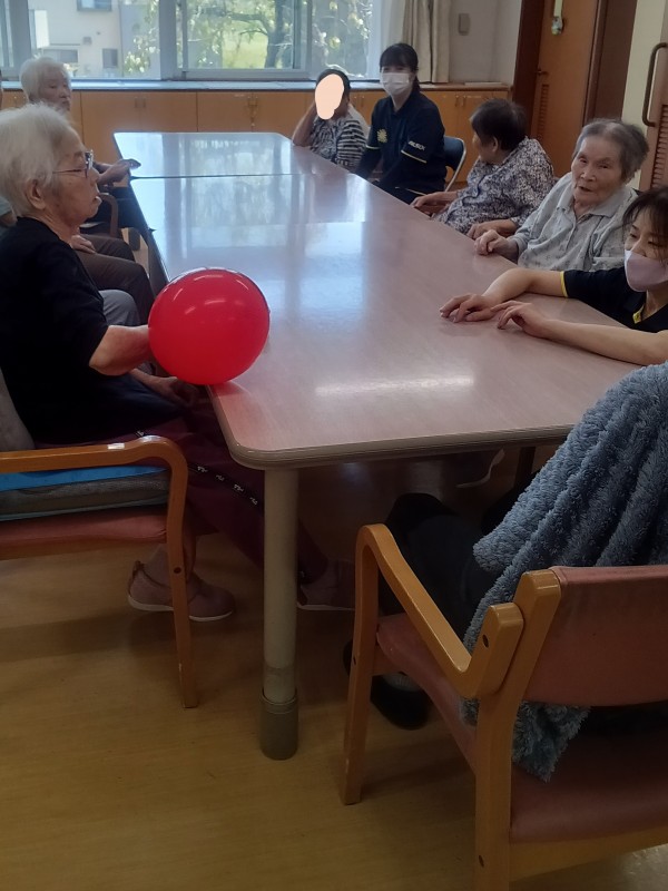 今日はAフロアにBフロアの皆様が集まり一緒に風船バレーを楽しみました(^^♪