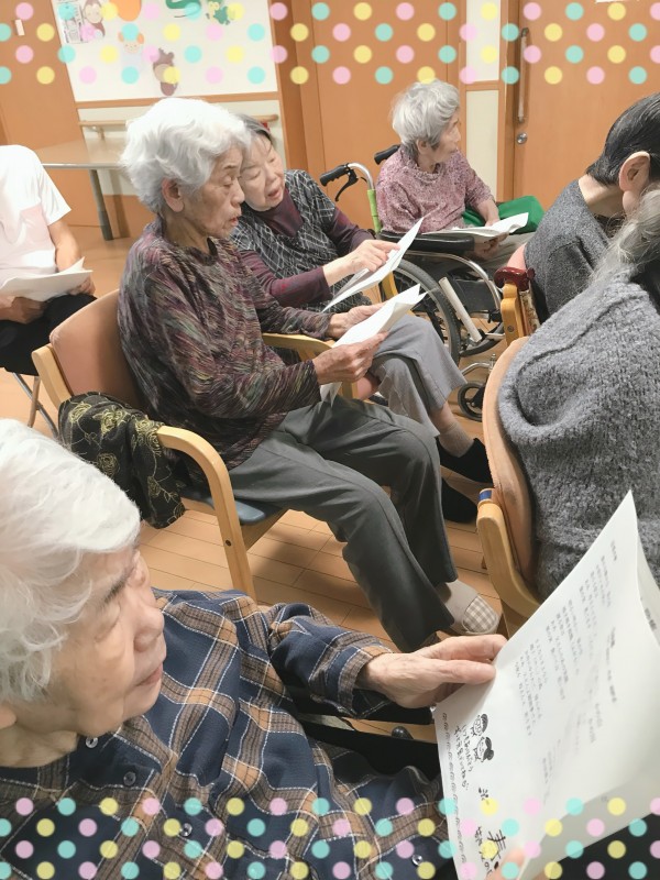 最近はあまり歌う事が少なくなってしまった方も懐かしい曲に自然と曲に合わせて歌う姿に職員も安堵しました。