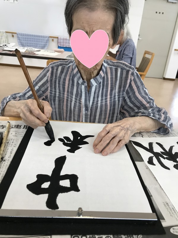 文字の大きさ、角度、半紙の使い方。