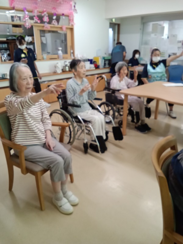 体操の先生が訪問して先生を前に体操が出来ると皆さんもとても張り切って運動が出来ます