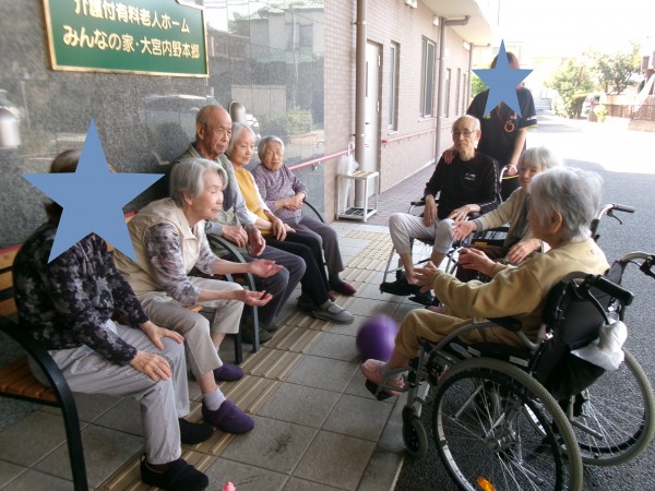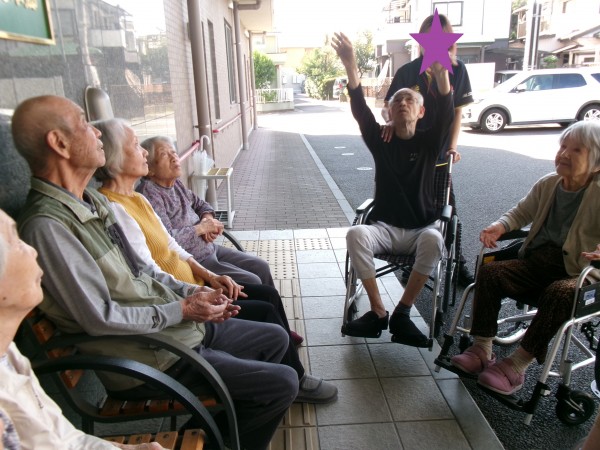今日はお天気もよくご入居様と外に出てボール遊びをしました。