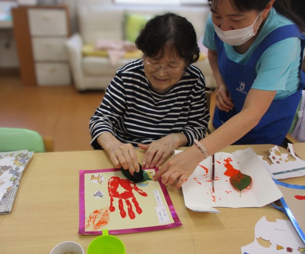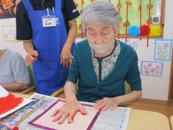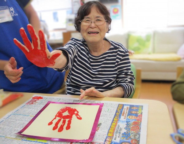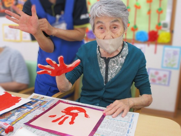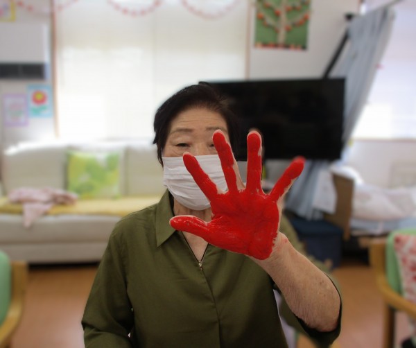絵具を手に塗るときは、「うわーー!」と叫び声(笑)
