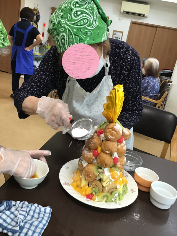 皆さんで歌をうたってお祝いした後にご自身で好きな量を取り分けて食べていただきました(*^^*)
